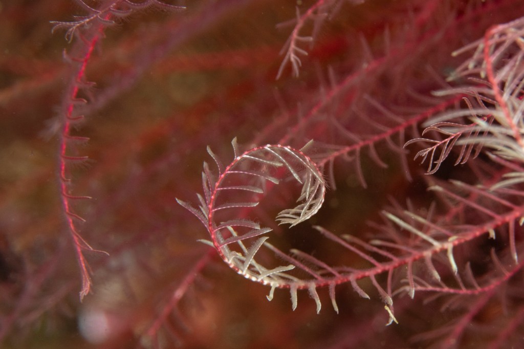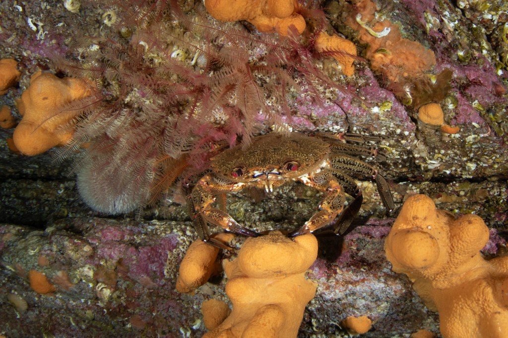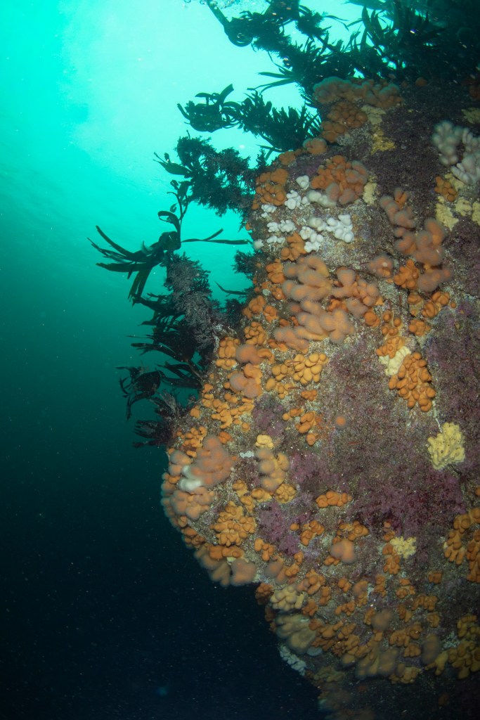 The underwater world here was teeming with life. Every dive revealed something new. The loch walls were particularly spectacular, absolutely smothered in featherstars, with starfish, anemones and patches of dead man’s fingers scattered between them. Various fish species and squat lobsters poked their heads out from cracks and crevices in the rock. Huge varieties of hydroids, colourful sponges and ascidians in every size and shade added even more vibrancy. You could easily spend an entire dive just exploring one small area. Add to that the shoals of fish drifting past and the ever-inquisitive wrasse, and it really was superb diving.